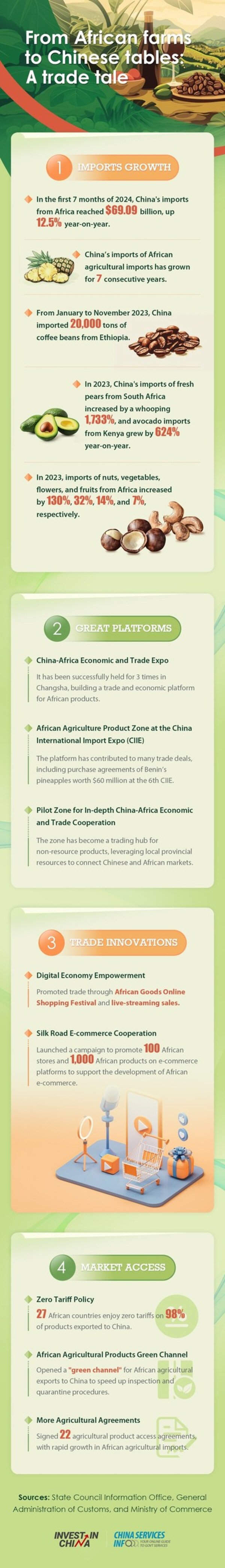 BEIJING,Nov. 12,2024-- A news report fromchinadaily.com.cn: China-Africa trade has been growing for years,with more and more high-quality African agricultural products entering the Chinese market. I