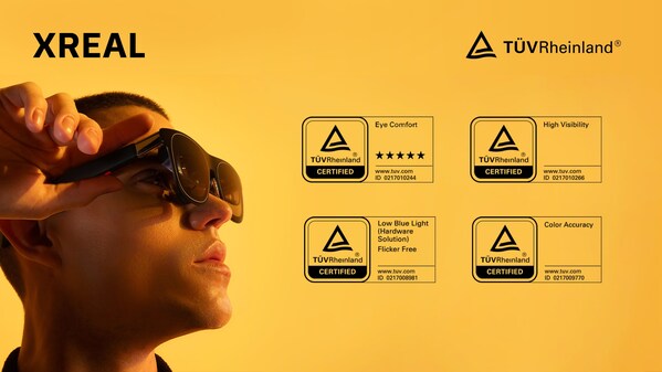 SHANGHAI,Dec. 5,2024 -- TÜV Rheinland Greater China,an international independent third-party testing,inspection,and certification organization,has issued Eye Comfort(5 Star),High Visibility,Color Accuracy,Low BlueLight,and FlickerFree certifications to the newest augmented reality (AR) glasses created by XREAL,the XREAL One Series.These achievements mark a groundbreaking advancement in AR eyewear,setting new benchmarks for user health and comfort.