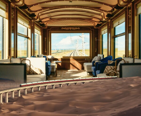 Launching into 2025,the Silk Road Express will offer journeys along the Qinghai-Gansu route (round trip from Xining to Dunhuang) and the Southern Xinjiang routes. The train features 38 luxurious ensuite guest rooms,a karaoke lounge,and a mahjong parlor,offering a unique blend of comfort and local entertainment. Experience a first in China with our groundbreaking 270-degree panoramic carriage that brings the country's majestic scenery right to your seat. Onboard,treat yourself to a curated selection of exclusive activities,choosing among elegant afternoon teas,lively cabaret shows,sophisticated cocktail parties,bespoke jewelry sessions,enlightening art lectures,sumptuous gourmet tastings,and rejuvenating spa experiences—all designed to transform your journey into a masterpiece of travel.