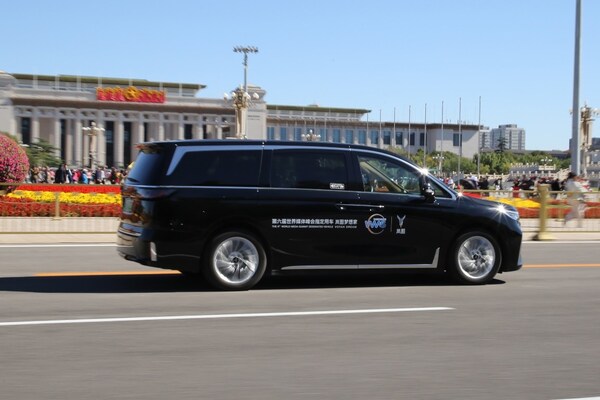 Media delegates arrive at the Beijing venue in Voyah electric vehicles.