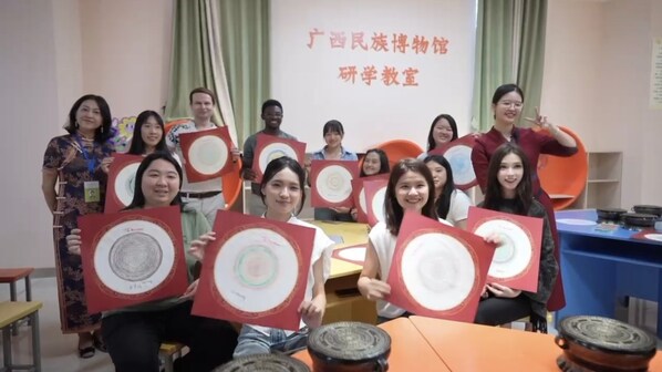 Gen Zers representatives display ethnically inspired artworks at Guangxi Museum of Nationalities.