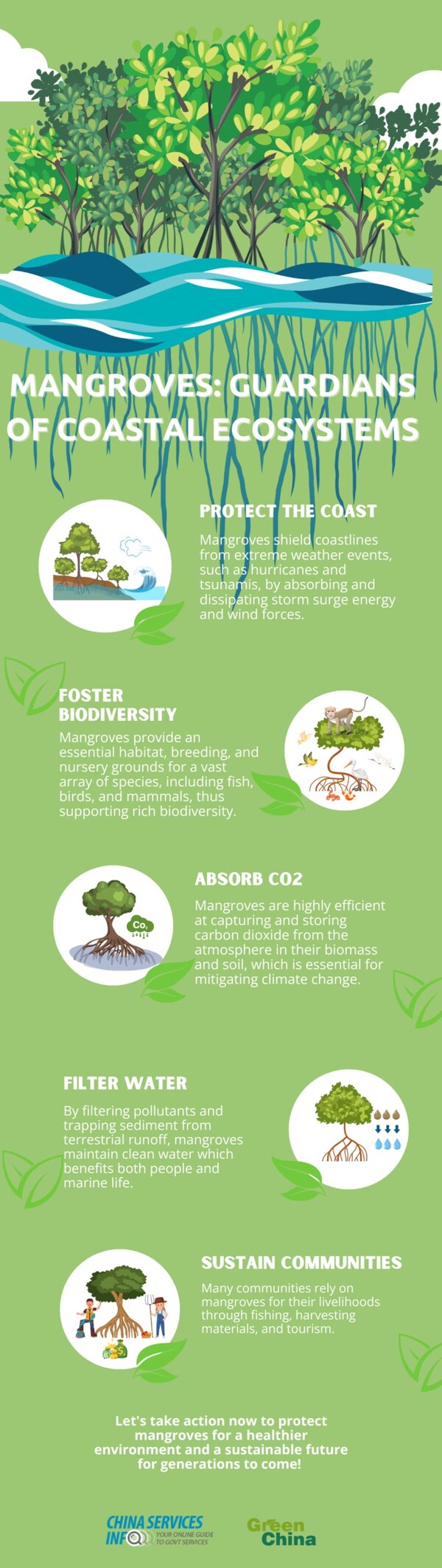 BEIJING,Nov. 11,2024-- A news report fromchinadaily.com.cn: Mangroves are true superheroes of our coastlines—they buffer against storms,nurture countless species,and lock away carbon! From purifyin