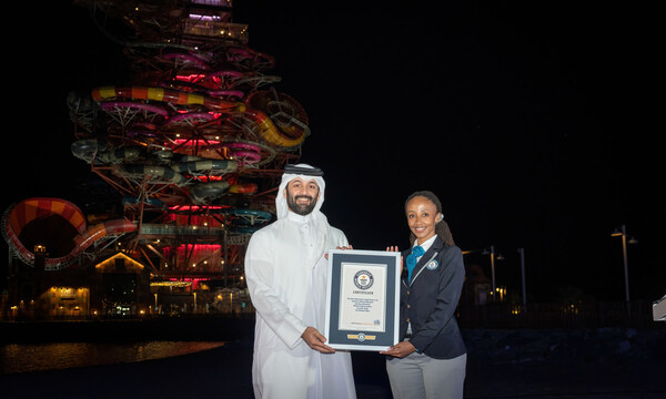 The tallest Waterslide at 76.309 metres Most Waterslides From a Single Tower – 12 Slides LUSAIL,Qatar,Dec. 3,2024-- Qetaifan Projects,a subsidiary of Katara Hospitality,proudly announced that "